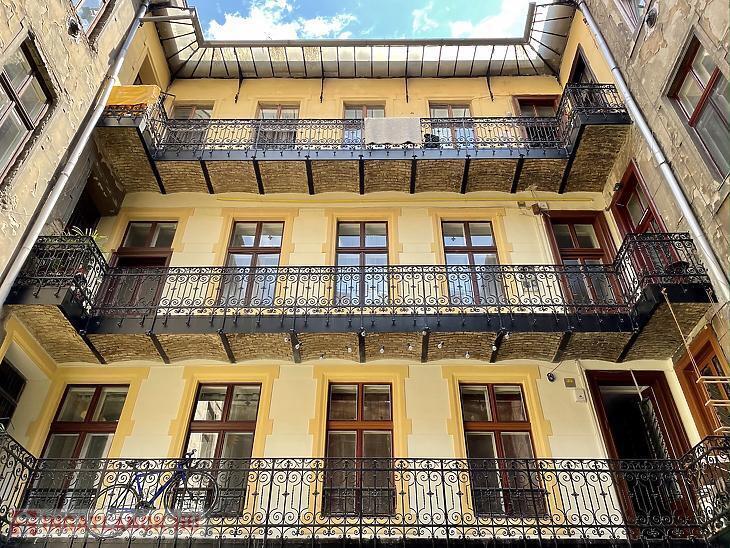 Palotanegyedben emeleti, tágas lakás egy XIX. század végén épült, klasszikus társasházban. Az ingatlan a ház hátsó homlokzati traktusában található, és ezen a szinten egyedüli lakásként foglalja el a hátsó épületszárnyat.