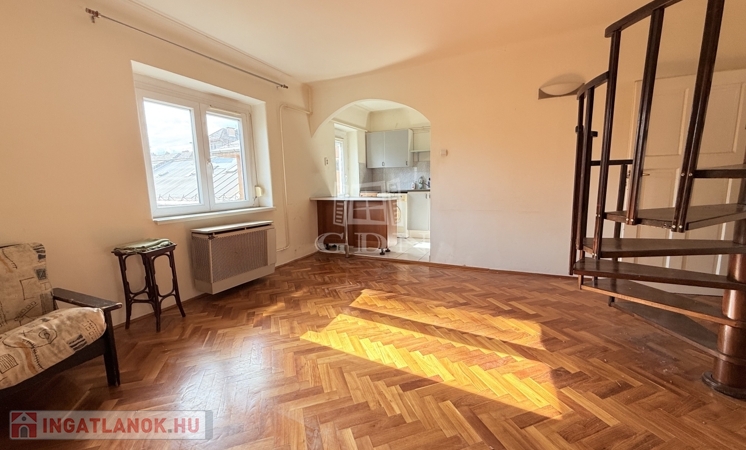 Titkos favorit a zavaros ingatlanpiac sokaságában, Zugló és Józsefváros határán a Puskás aréna mellett kiemelkedő infrastruktúrával. Ha szeretne központi elhelyezkedéssel egy kiváló, lakható, de akár könnyen bérbeadható társasházi lakást megfizethető áron akkor érdemes ezt az ingatlant személyesen is felfedeznie. Csupán 4 megállónyira (7perc metró) a Deák Ferenc tértől, Stadionok metró megállótól séta távolságban, madárcsicsergős, zöld és békés környezetben Stróbl Alajos utcában található az ingatlan. Elkerített zárt kertben áll az a 6 lakásos lépcsőház melyben a legfelső, második emeleten helyezkedik el ez a különleges, sallangoktól mentes duplex lakás. Az összes ablaka a csendes belső kert irányába néz és napkeltétől napnyugtáig világos, fényárban úszik. Az épület rendezett, a tetőt 10 éve újították fel új cserépfedést kapott, egyidejűleg velux ablakok kerültek beépítésre a felső szinten és az alsó szinten is műanyag ablakok váltották a fa nyílászárókat. Az alsó szinten az előszobából nyílik az összes helyiség, egy tágas háló, mellette egy praktikus kamra /dolgozó ablakkat és a fürő illetve a külön wc kapott helyet a konyha nappali mellett. A konyha – étkező és nappali jelenleg egy egység, de az ablakok elhelyezkedésének köszönhetően akár újra külön választhatóak. A nappaliból vezet fel egy csigalépcső, ahol további két hálószoba (ablakokkal)található, igény esetén a felső szint is alkalmas egy zuhanyzó és mosdó elhelyezésére. Az alső rész 47m2 a felső pedig bruttó 56m2 , a földhivatali nyilvántartás szerint 77m2, az értékesítési alapterületkén a 190cm alatti területet a szokásos 50%-kal került feltüntetésre. Fűtését tekintve jelenleg gázkonvektor, ami akár egy mika kazánra is cserélhető. Igény esetén a fűtés hőszivattyús klímákkal is megoldható opcionálisan H tarifával párosítva. A lakást immár 6 évig bérlő lakta, azonnal birtokba vehető az ingatlan. A környéken minden megtalálható, ami városi mindennapok kényelméhez elengedhetetlenek. Könnyen parkolhatóak a környező utcák, kiváló tömegközlekedési lehetőségek állnak rendelkezésre. Az aréna pláza csupán 900m távolságra. Tökéletes lehet akár nagyobb családok részére, de bérbeadás is korrekt hozamot hoz a stabil ingatlan ár növekedés mellett így magas inflációs környezetben értékálló befektetés.
