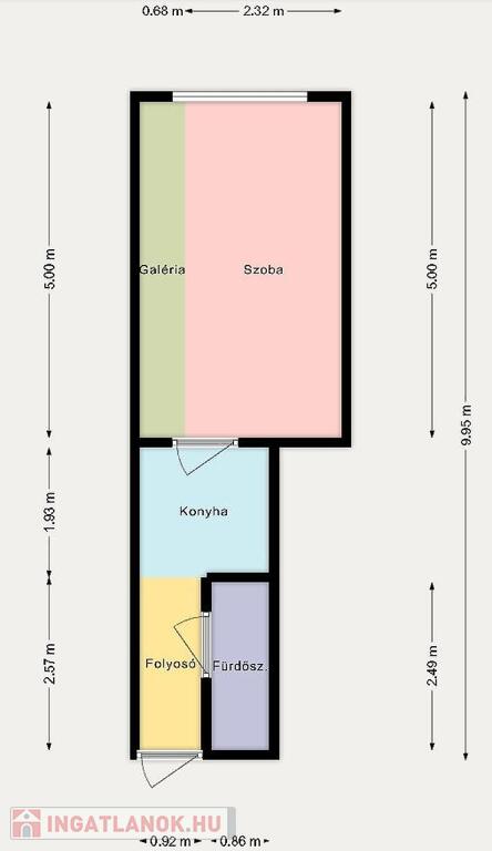 A praktikus galériának köszönhetően a tér jól kihasználható, ideális első lakásnak vagy befektetésnek is.