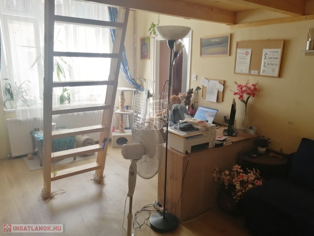 Tégla építésű HÁZBAN, udvarra néző, első emeleti, két szobás, ablakos konyhás 39 nm ingatlan.
