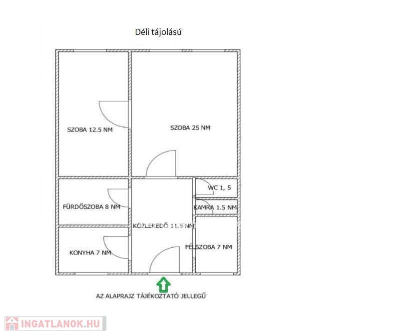 A nagyszobák ablakai az utcafrontra, a félszoba és a konyha ablaka a belső udvarra néz.