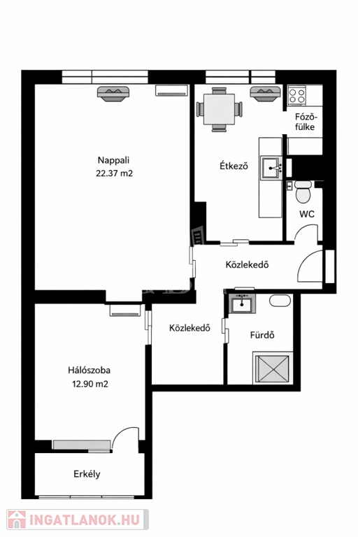 A lakás elosztása ideális: két különnyíló szobával rendelkezik, így kiváló választás lehet akár befektetésnek, akár saját otthonnak is. A világos, ablakos konyha tovább növeli a komfortérzetet, míg az erkély kellemes kikapcsolódási lehetőséget nyújt.