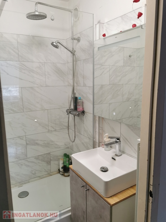 - Fürdő: Wellis szaniterekkel felszerelt vizesblokk, modern, épített zuhanyzó (kád nélküli kialakítás).