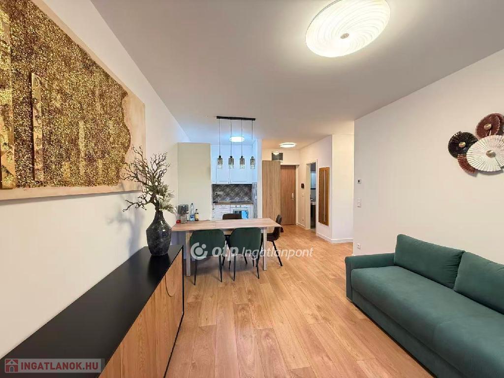 A modern építészeti irányzatoknak megfelelő, liftes, négyemeletes társasház kifinomult megjelenésű és praktikus elrendezésű. A biztonságos, zárt és ízlésesen kialakított lépcsőházból a tágas, beépített gardróbbal ellátott előszobába léphetünk. Bal oldalon található a kádas fürdőszoba, egy különálló tárolóhelyiség, valamint a hálószoba. A lakás központi része a világos, keleti fekvésű, amerikai konyhás nappali, amely közvetlen kijáratot biztosít a teraszra és a gondozott kertre, mind a nappaliból, mind a hálóból megközelíthetően.
