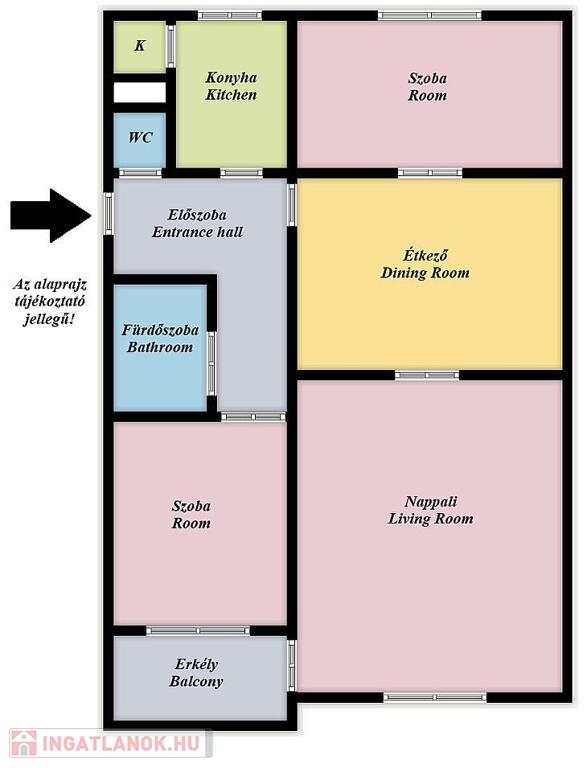 - 2 teljes értékű szoba + 1 fél szoba