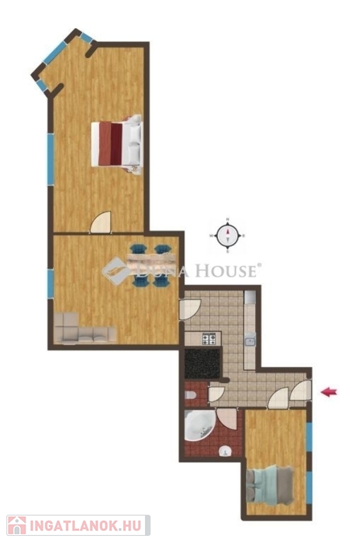 - Szobák: nappali + 2 külön nyíló hálószoba