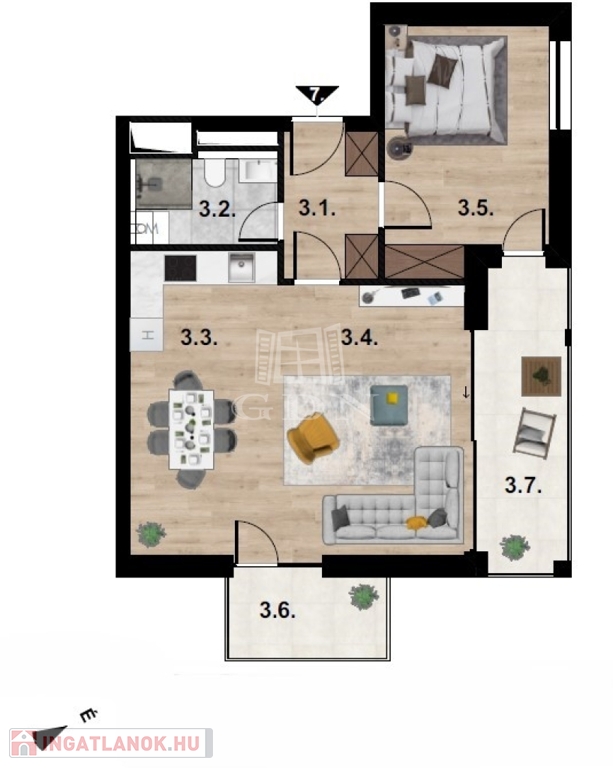49, 54, 71, 80 nm2 méretű ingatlanok közül lehet választani. Földszinti lakások saját terasszal és kertrésszel míg az 1. és 2. emeleti lakások nagy teraszokkal rendelkeznek.