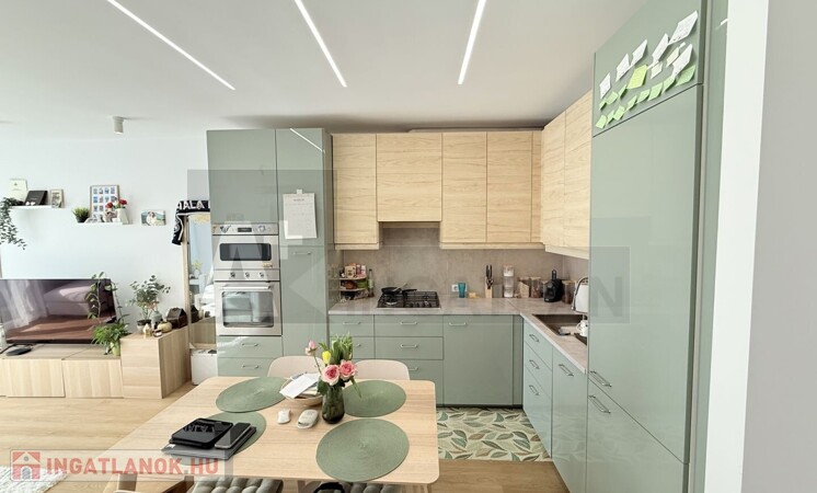 A lakás az elmúlt években teljesen megújult , belső építész tervei alapján készült, ahol a cél a modern elegancia és a praktikus kihasználhatóság ötvözése volt. A felújítás során különös figyelmet fordítottak az elegáns színharmóniára. A belső terekben a pisztácia , lágy bézs , tiszta fehér ,nemes szürke árnyalatai dominálnak , amelyeket a kiegészítőkkel és a meleg fa felületekkel tettek otthonossá.