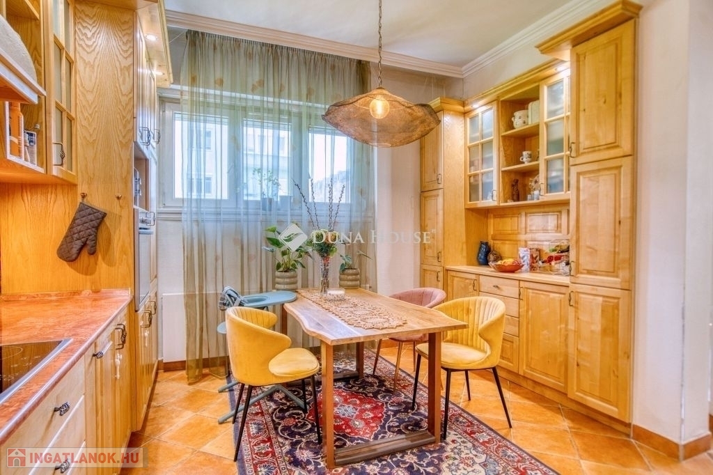 Világos, jó elosztású, erkélyes lakás rendezett, liftes társasházban, a Kosztolányi Dezső tér szomszédságában.Az ingatlan egy 6 emeletes, karbantartott épület 2. emeletén található. A társasház erkélyei 2 éve teljes körű felújításon estek át. Az épület állapota rendezett és folyamatosan karbantartott.A lakás főbb jellemzői:-Alapterület: 73m²-Erkély: 4 m²-Tájolás: délnyugati (világos, napfényes)-Közös költség: 17.560 Ft-Tároló: saját, száraz, 6,45 m²-es pincehelyiségHelyiségek méretei:szoba:20m2szoba: 23m2konyha étkezővel:20m2fürdőszoba zuhanykabinnal :4m2közlekedő+előszoba: 6m2+erkély:4m2A lakás kiválóan alakítható, a tágas helyiségeknek köszönhetően akár két hálószobás lakássá is átalakítható, így családok vagy befektetők számára is ideális választás.Műszaki tartalom:-Fisher klíma a hálószobában-gázkazán biztosítja a fűtést és a meleg vizet-műanyag nyílászárók redőnnyel és szúnyoghálóval-saját víz- és gázóra-riasztórendszer-biztonsági bejárati ajtó rácsos védelemmel-a lépcsőház előterében kamerarendszer működikA vételár tartalmazza:-asztalos által készített gépesített konyhát (hűtő, mosogatógép, tűzhely, sütő, páraelszívó)-nappali szekrényt-mosógépetA lakás kb. 15 éve teljes körű felújításon esett át, jelenlegi állapotában azonnal költözhető.Környék:-A környék infrastruktúrája kiváló. Néhány perc sétára található:-Kosztolányi Dezső tér-Feneketlen-tó park-Bartók Béla út éttermei, kávézói-üzletek, gyógyszertár, orvosi rendelő-villamos- és buszmegállókA lokáció miatt saját részre és befektetésnek is kiváló választás.Költözés:A lakás néhány hónapon belül, legkésőbb 2026 júniusáig költözhető.Megtekintés előzetes egyeztetés alapján lehetséges.