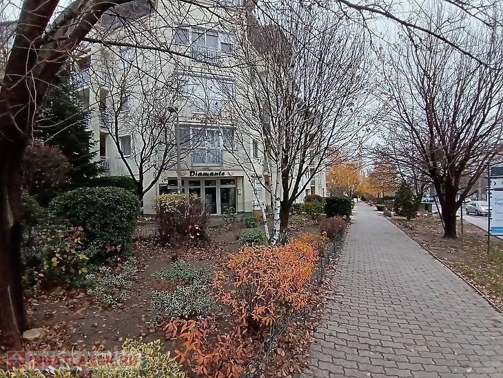A társasház és a közös kert is szépen karbantartott és gondozott.
