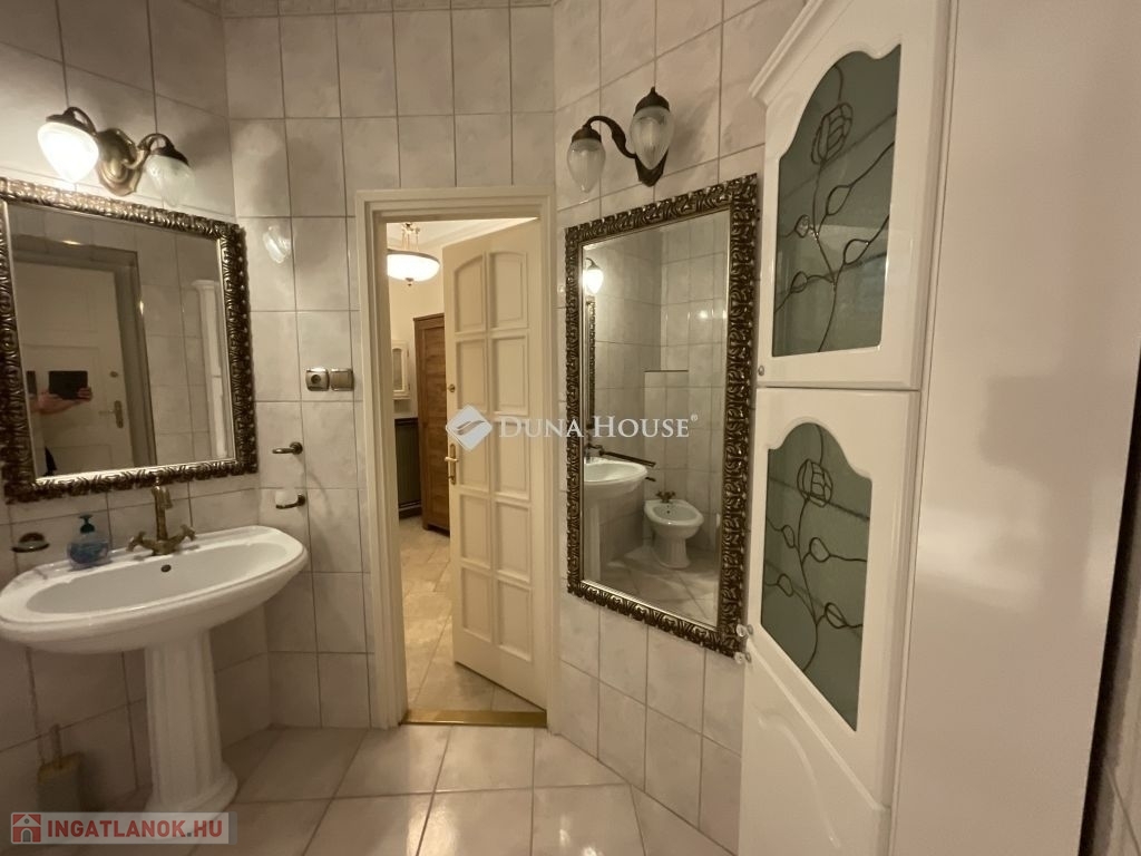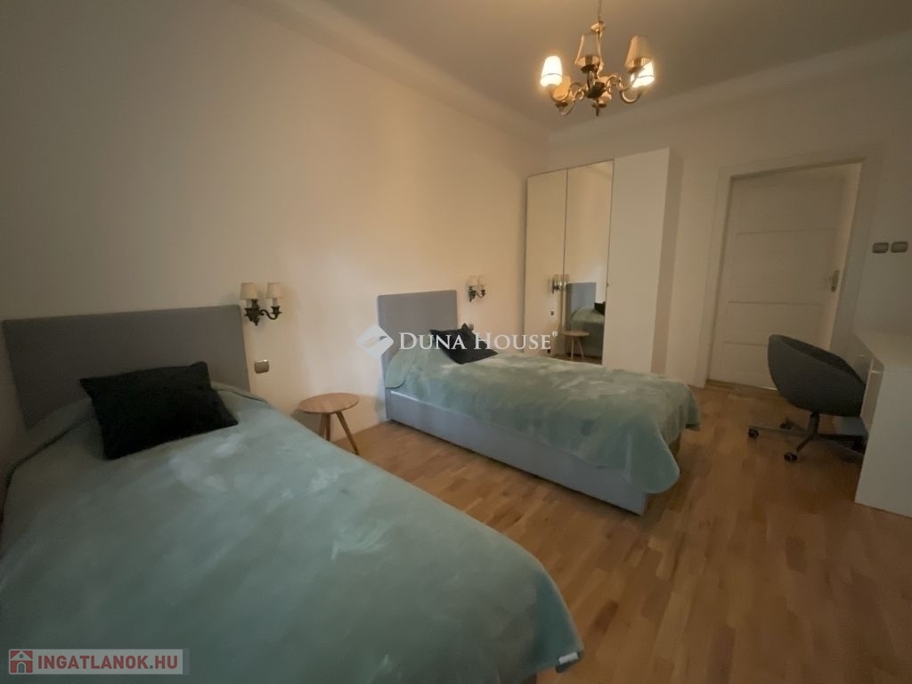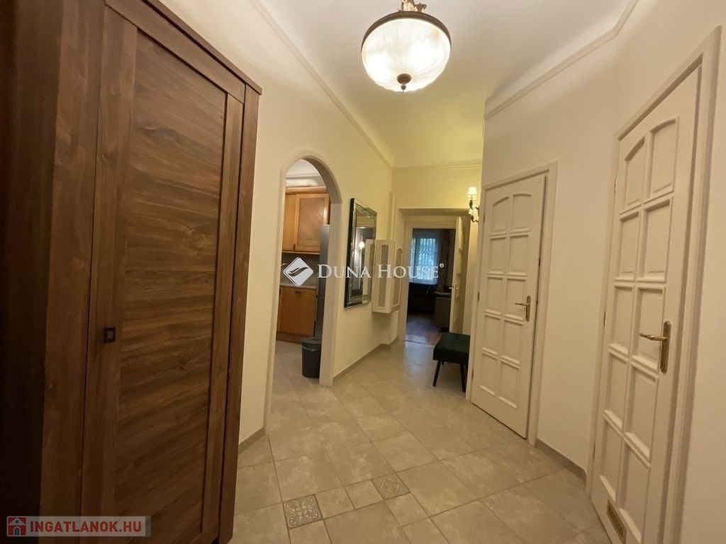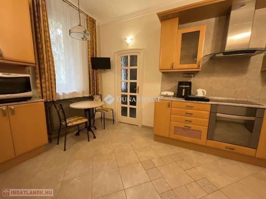 magasföldszinten található, 74 négyzetméteres lakás ablakai kertre néznek,előttük közvetlenül zöld lombú fák állnak, így reggelente madárcsicsergésre ébredhetünk. Az ajtón belépve tágas terek fogadnak: nagy, kényelmes szobák, jól felszerelt konyha étkezővel. A konyha nagyméretű ablaka a ház belső udvarára néz. A sarokkádas fürdőszoba tágas, letisztult és praktikus. A lakásban található még egy 2 nm-es, ablakos helyiség, amely kiválóan alkalmas akár dolgozószobának, vagy gardróbnak is. Az ingatlan kisebb családnak, pároknak is kényelmes otthona lehet, de akár irodává is átalakítható.A nyári melegben is kellemesen hűvös lakásban jelenleg nincs klíma, de ennek kiépítése is megoldható.