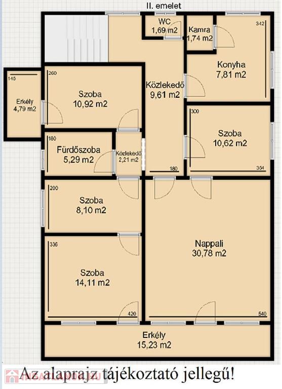 A 100 nm-es lakótérhez tartozik még egy utcafronti 15 nm-es terasz, illetve egy oldalsó 5 nm-es erkély.