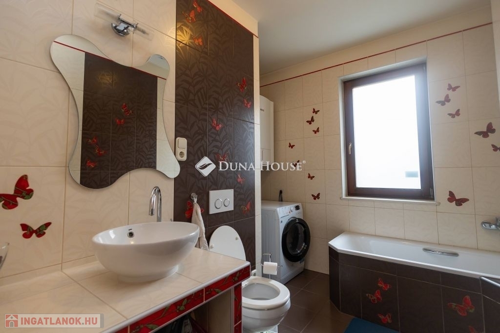 Sasadon eladó egy 67 m²-es, 3 szobás 2011-ben épült lakás, 24 m²-es terasszal, 124 m²-es saját kerttel és 2 állásos garázzsal.