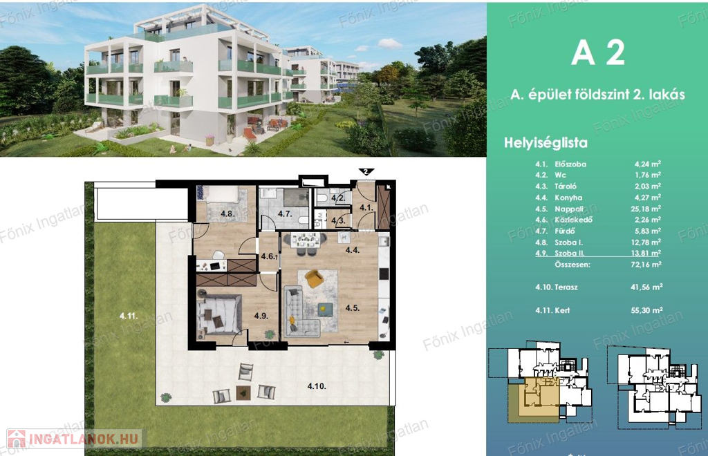A kínálatban az alábbi alapterületű ingatlanok érhetők el: 54 m2, 80 m2, 84 m2.