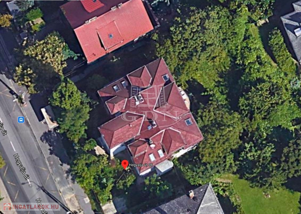 A lakás az utca felöl félemeleten, a kert felöl pedig az 1. emeleten található, egy 7 lakásos vila épületben, 1030 nm-es telken.