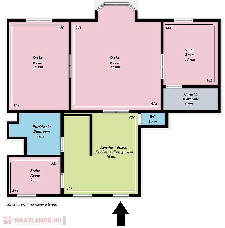 Nappali + 3 hálószoba és egy hálószobából nyíló gardróbszoba: A szobák mérete és elosztása ideális életteret biztosít nagycsaládosok számára, vagy akár otthoni munkavégzésre, iroda kialakítására is alkalmas.