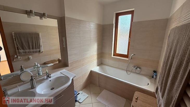 Ezen kívül a piceszinten található a két beállásos garázs (36,5 nm), melyből az egyik beálló a lakáshoz megvásárlandó. Ára 10 M Ft. Ezt a ház mellett futó, fűthető lehajtóról lehet elérni autóval.