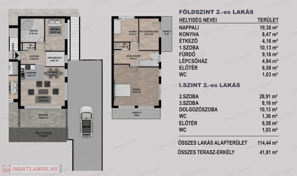 opcionálisan plusz 1 parkolóhely lakásonként megvásárolható
