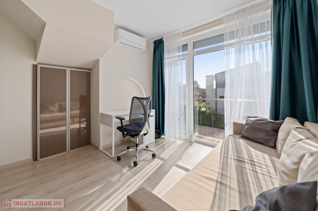 A lakás egy 4 lakásos, modern társasházban található. Nyugodt, rendezett lakóközösség és csendes, kertvárosias környezet jellemzi.