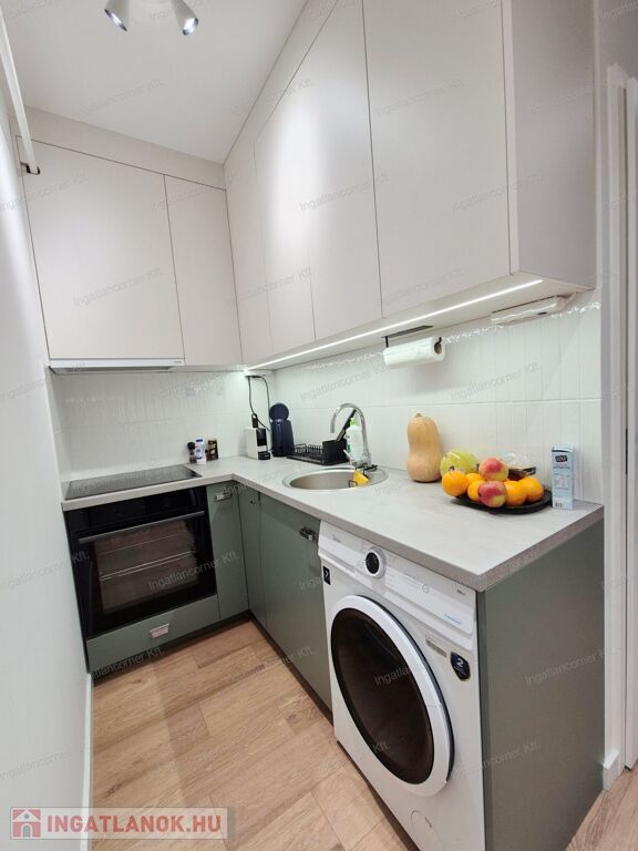 A lakás nemcsak modern, de azonnal költözhető, hiszen a teljes bútorzat és gépesítés a része az ajánlatnak: