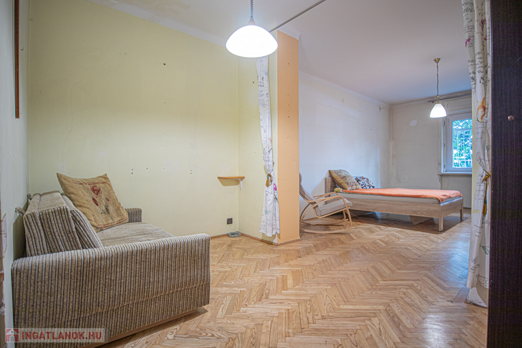 A lakás jelenleg is jó beosztású, de akár tovább is alakítható 2 szobássá, a fotók között elérhető a lakás alaprajza és átalakítási javaslat is.