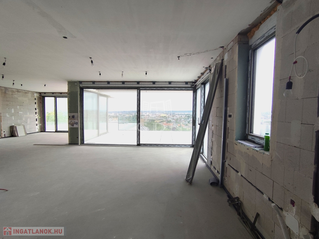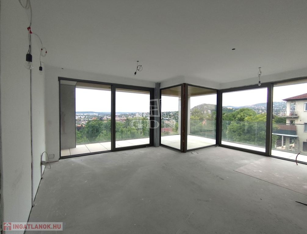 A felső szinten nappali, konyha, étkező, vendégmosdó és a lenyűgöző panorámás tetőterasz várhat pergolával, medencés résszel. Az alsó szinten 3 hálószoba, 2 fürdő és további teraszok kaptak helyet. A lakás 70%-os készültségben van – így új tulajdonosa saját ízlése szerint alakíthatja ki, vagy kulcsrakészen is megvásárolhatja. A garázs alkalmas lehet szauna, welness kialakítására a közel 80 m2-en.