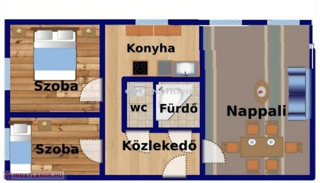 A lakás kifejezetten jó adottságokkal rendelkezik átalakításra is: akár amerikai konyhás nappali + 2 hálós elrendezés is könnyen kialakítható.