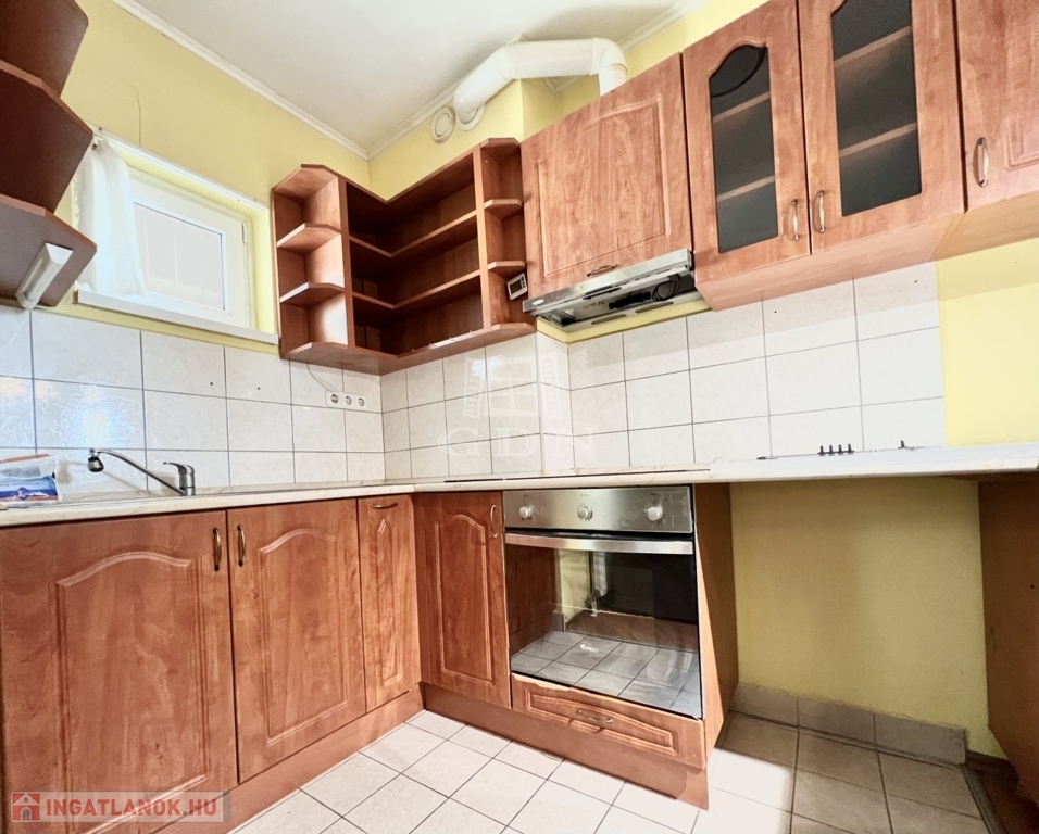 A konyha beépített, jó állapotú konyhabútorral, étkező asztal székekkel, és háztartási gépekkel felszerelt, többek között: