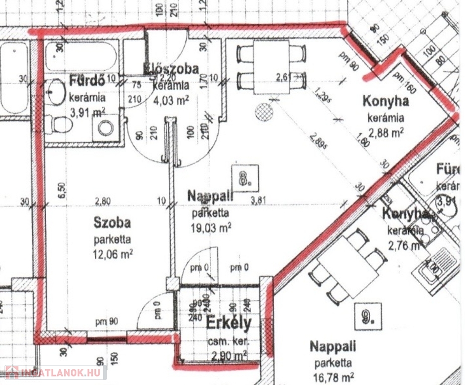 • valamint a fürdőkádas fürdőszoba WC-vel.