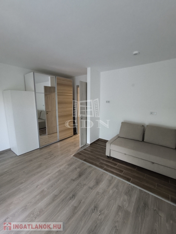 A 33 négyzetméteres ingatlan a második emeleten helyezkedik el. Egy szobával rendelkezik, melybe a konyhai beépítés is előkészített.