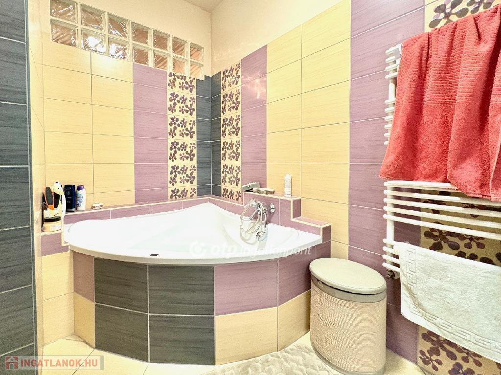 A lakás 14 évvel ezelőtt, emeletráépítés következtében került kialakításra. A lakás újszerű, az elektromos-, víz-és gázvezetékeket teljesen újak. Új kondenzációs gázkazán és légkondicionáló berendezés került beépítésre, aminek köszönhetően egész évben biztosított a kellemes hőérzet. A nyílászárók műanyagok. Az amerikai konyhás nappali és a fürdőszoba kellemes, modern hangulatú.