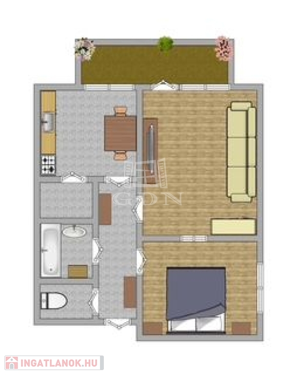 Ez a téglaépítésű ingatlan az 1. emeleten található és egy 7 négyzetméteres erkéllyel is rendelkezik.