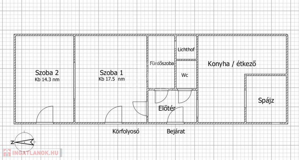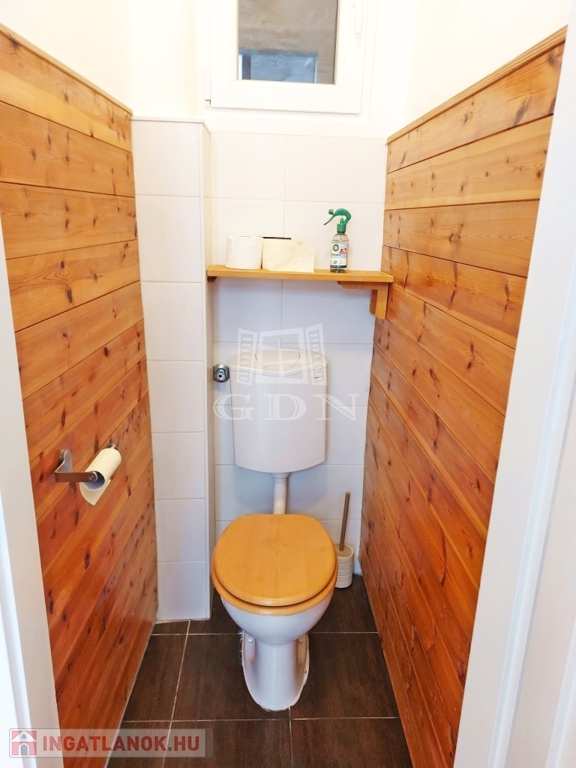Az ingatlan praktikus elrendezésű: két szobával, kényelmes méretű étkezős konyhával, valamint kamrával rendelkezik. A fürdőszoba és a WC külön helyiségben kapott helyet, ami tovább növeli a lakás komfortját.