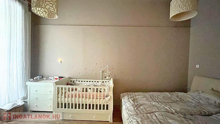 Szomszédságában találjuk az épített zuhanyzóval és mosdóval szerelt fürdőszobát és a külön wc-t.