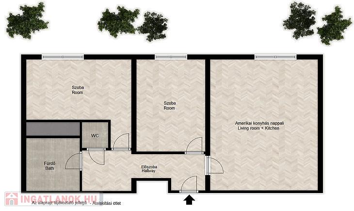 Igény szerint a lakás amerikai konyhás nappali + 2 szobássá alakítható.