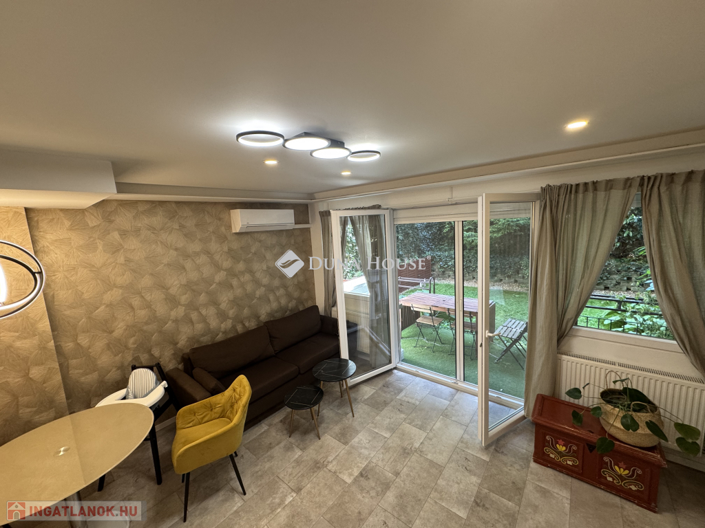 PLEASE SCROLL DOWN FOR THE ENGLISH DESCRIPTION.Kertkapcsolatos otthon eladó, Budapest egyik legszebb részén.Örömmel kínáljuk eladásra ezt a 51 nm-es, gondosan felújított lakást, amely kertkapcsolatos terasszal, erkéllyel, önálló garázzsal és külön tárolóval várja új tulajdonosát.Ideális választás családoknak és háziállatot tartóknakA lakás közvetlen kertkapcsolattal rendelkezik: a nappaliból kilépve egy tágas terasz és a gondozott, elkerített kert várja Önt. Ez igazi kincs kisgyermekes családoknak és házi kedvencet tartók számára. Itt biztonságban és jó levegőn tudhatja szeretteit.Kényelmes parkolás és extra tárolóA lakáshoz tartozik egy önálló garázs és egy külön tárolóhelyiség. Így nem csak a parkolás kényelmes, de a sporteszközök, a babakocsi vagy akár a kerti felszerelések tárolása is megoldott.Teljes körű felújítás csak beköltözni kellAz ingatlan néhány éve teljes körű felújításon esett át: megújult a fűtésrendszer, a víz- és villamoshálózat, új burkolatok, modern nyílászárók, elektromos redőnyök kerültek beépítésre. A konyha beépített szekrényekkel és gépekkel (hűtő, főzőlap, mosogatógép, elszívó) együtt része az árnak.Önnek már csak költöznie kell.Praktikus elrendezésAmerikai konyhás nappali terasszal és privát kertkapcsolattalKét hálószoba, közös használatú erkéllyelFürdőszoba és előszoba középenKellemes környezet, kiváló elhelyezkedésA több ezer nm-es telken öt darab hatlakásos ház található és az egyik belsőben van a mi lakásunk. A környék csendes, tiszta levegőjű, mégis kiváló a közlekedés: bevásárló- és szórakoztató központok (Mom Park, Hegyvidék Központ, Mammut) percek alatt elérhetőek.Ár és elérhetőség Lakás ára: 118,9 M Ft Önálló garázs: 20 M Ft Külön tároló: 7 M FtHa szereti a zöld környezetet, a kertkapcsolatot és a jó a levegőt, akkor ez a lakás Önre vár.Forduljon hozzám bizalommal bármilyen felmerülő kérdéssel vagy megtekintéssel kapcsolatban.------------------------------------------------------------------------------------------------------------------------------------------------------------------------------------------------------Garden-Access Home for Sale in One of Budapests Most Beautiful AreasWe are delighted to offer for sale this carefully renovated 51 sqm apartment, featuring a garden-access terrace, balcony, private garage, separate storage room, and an additional parking spaceready to welcome its new owner.An Ideal Choice for Families and Pet OwnersThe apartment offers direct garden access: step out from the living room onto a spacious terrace and into a well-kept, fenced garden. This is a real treasure for families with young children or pet owners, providing a safe environment and fresh air for your loved ones.Convenient Parking and Extra StorageThe property includes a private garage, a separate storage room, and an additional surface parking space. This ensures not only convenient parking but also ample storage for sports equipment, a stroller, or even garden tools.Fully RenovatedJust Move InThe apartment underwent a full renovation a few years ago: the heating system, water and electrical networks were upgraded, new flooring installed, modern doors and windows with electric shutters fitted. The kitchen comes fully equipped with built-in cabinets and appliances (fridge, hob, dishwasher, extractor)all included in the price. All you need to do is move in.Practical LayoutOpen-plan living room with American-style kitchen, terrace, and private garden accessTwo bedrooms with shared balconyBathroom and entrance hall centrally locatedPleasant Surroundings, Excellent LocationOn the several-thousand-square-meter plot, there are five buildings, each with six apartments; our property is located in one of the inner buildings. The area is quiet and offers clean air, yet has excellent transport links: shopping and entertainment centers (Mom Park, Hegyvidék Center, Mammut) are only minutes away.Price and AvailabilityApartment price: HUF 118.9 millionPrivate garage: HUF 20 millionSeparate storage: HUF 7 millionIf you love green surroundings, direct garden access, and fresh air, this apartment is waiting for you.Feel free to contact me with any questions or to arrange a viewing.