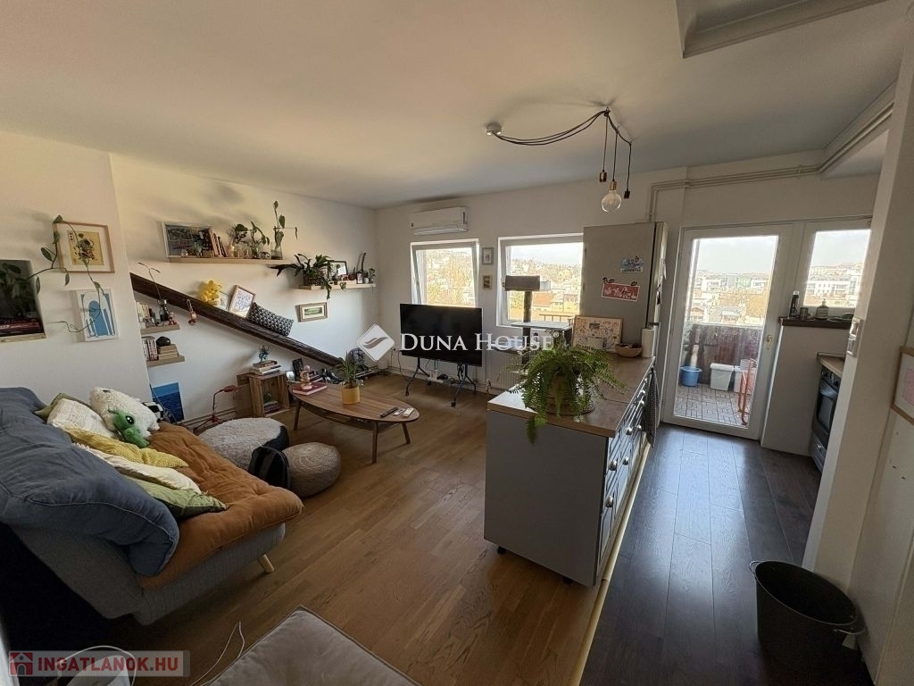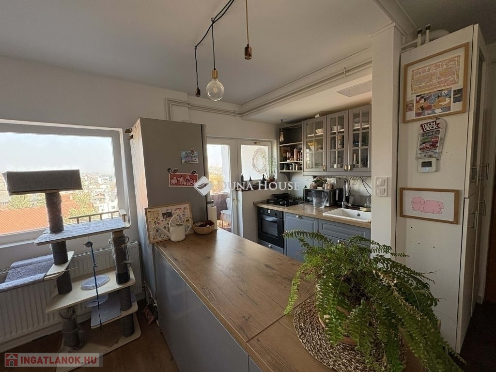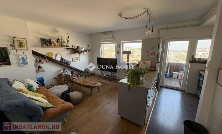 Eladásra kínáljuk ezt a 60nm-es, erkélyes, panorámás lakást 12. kerület egyik legjobb utcájában, Margaréta utcában!4.emelet (lift nélkül), tetőtéri, észak-kelet / dél-nyugat tájolás két frontos ingatlanNappaliból páratlan panoráma Főbb jellemzők:Nappali+2 szobaTeljes körű felújítás az elmúlt években: korszerűsített fűtés, légkondicionálás, modern belső megoldásokCirkófűtés: 5 évesLégkondik: mindkét fronton telepítveA társasház folyamatosan karbantartott, jó állapotú; lépcsőház felújítva az elmúlt években, tavalyi festés megtörténtBarátságos lakóközösség; gyerek- és kutyabarát környezetElhelyezkedés, szolgáltatások:Ház mellett játszótér; 100 m-en belül kis boltok, kávézók5 perces sétán belül: élelmiszerbolt, éjjel-nappali, DM, pékségek, cukrászda, fagyizó, hentes, gyógyszertár, termelői és biopiacKiváló tömegközlekedés: Pest és Moszkva tér ~15 perc, MOM és Déli pályaudvar ~10 percNormafa autóval ~10 percParkolóhely általában rendelkezésre állKöltségek:Rezsi: átlagosan 3050 ezer Ft/hó (közös költség tartalmazza a vizet; külön villany és gáz eltérés nyári/téli időszak szerint)Miért érdemes?Két frontos elhelyezkedés, kiemelkedő fény- és szellőzésviszonyokNappaliból nyíló erkély, szép panoráma és csendes tetőtéri hangulatGondozott társasház és élhető, jól felszerelt környék ideális családnak, pároknak, otthoni munkavégzéshez egyarántÉrdeklődni privát üzenetben vagy telefonon lehet szívesen küldök további képeket és időpontot a megtekintésre.