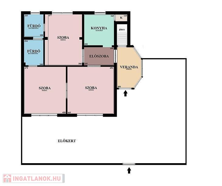 Az ingatlant a közvetlen utcafronti, saját használatú kertből közelíthetjük meg. A bejárati ajtón belépve egy 10 nm-es nagy üvegfelülettel rendelkező, napos veranda fogad minket. Innen nyílik a több helységet is összekötő előszoba.