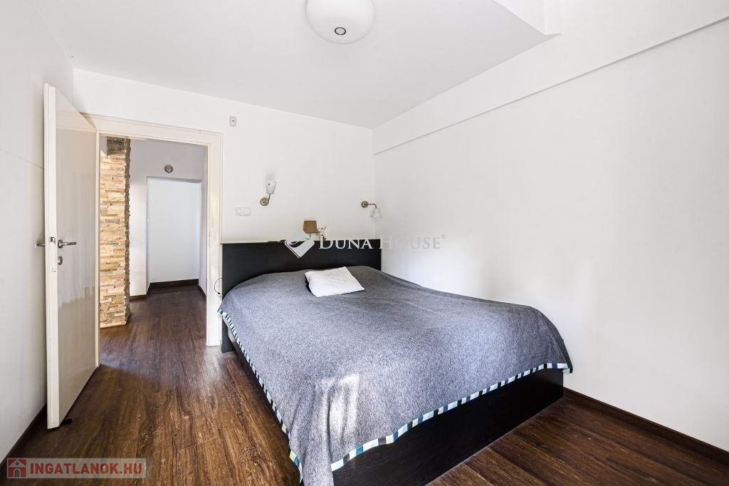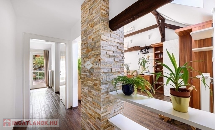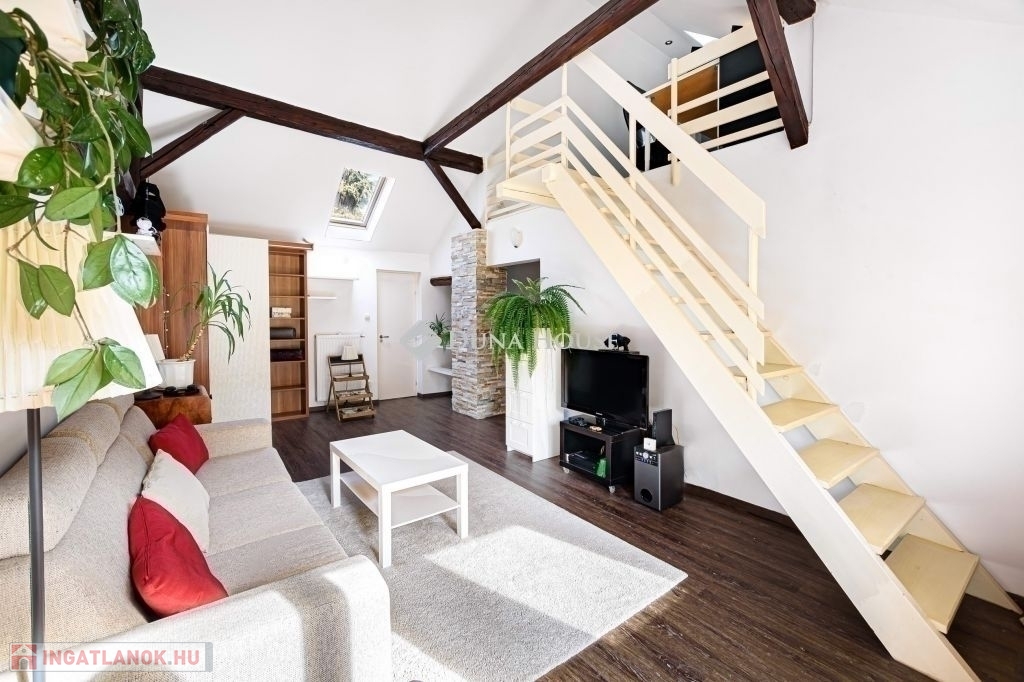 Napsütötte, tágas, teraszos otthon - KissvábhegyenBudapest egyik legkedveltebb, zöldövezeti részén, a XII. kerület Kissvábhegyén, az Ügyész utcában kínálunk megvételre egy különleges hangulatú, 80 m²-es, belső kétszintes lakást, 12 m²-es, napfényben fürdőző, kertre néző saját terasszal.A lakás egy elegáns, háromlakásos villaépület legfelső szintjén helyezkedik el, így teljes intimitást és nyugalmat biztosít tulajdonosának.A lakás különlegességei:- Lélegzetelállító terek és fényár a 4 méteres belmagasság, valamint a rusztikus, látszó gerendás nappali egyedi karaktert kölcsönöz az otthonnak.- Kivételes tárolókapacitás ízlésesen beépített szekrények és tágas gardrób biztosítanak rendszerezett életteret.- Csendes, zöld környezet, mégis kiváló közlekedés a belváros mindössze percek alatt elérhető. (Busz: 21, 39, 102, 210, 212 Villamos: 17, 59, 61 M2 metró: 10 perc séta)A lakás elrendezése:- elegáns előszoba- konyha-étkező + kamra- tágas nappali rusztikus látszógerendákkal, közvetlen teraszkapcsolattal- kényelmes méretű hálószoba, szintén kijárattal a teraszra- stílusos fürdőszoba zuhanykabinnal és WC-el- a galériaszinten egy nyitott, világos dolgozó- vagy vendégszoba, beépített gardrób és extra tárolófelületekA lakás a villa felső szintjén, kb. másfél emelet magasságban található. A hozzá vezető zárható, kizárólagos használatú lépcsőház további biztonságot és extra tárolási lehetőséget kínál.A lakás teljes körű felújításon esett át, és azóta is gondosan karbantartott.Cirkófűtés és klímaberendezés gondoskodik az évszakokhoz illő kényelemről.Külső adottságok:A villa egy 1070 m²-es, ősfás, parkosított telken helyezkedik el. A lakáshoz saját kerthasználat tartozik, ahol homokozó-játszórész, grillterasz, pihenőkert vagy veteményes is kialakítható.A kényelmet saját udvari gépkocsibeálló és külön külső tároló is szolgálja, melyek árát a vételár tartalmazza!!!Ez az ingatlan tökéletes választás azoknak, akik egy napfényes, hangulatos, otthonos lakást keresnek a XII. kerület egyik legjobb részén, ahol a zöld környezet és a városi kényelem találkozik.Ha Ön is egy egyedi atmoszférájú, magas minőségű lakásra vágyik Budapest egyik legkívánatosabb részén, keressen bizalommal a részletekért és a megtekintés egyeztetéséhez!