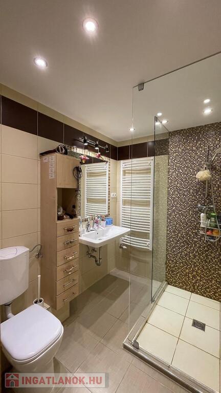 Szomszédságukban találjuk az épített zuhannyal és wc-vel szerelt fürdőszobát és a háztartási helységet, amelyből igény szerint még egy további fürdőszoba is kialakítható.
