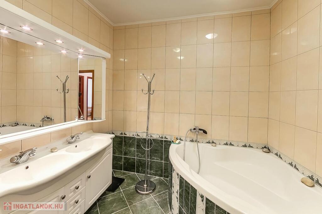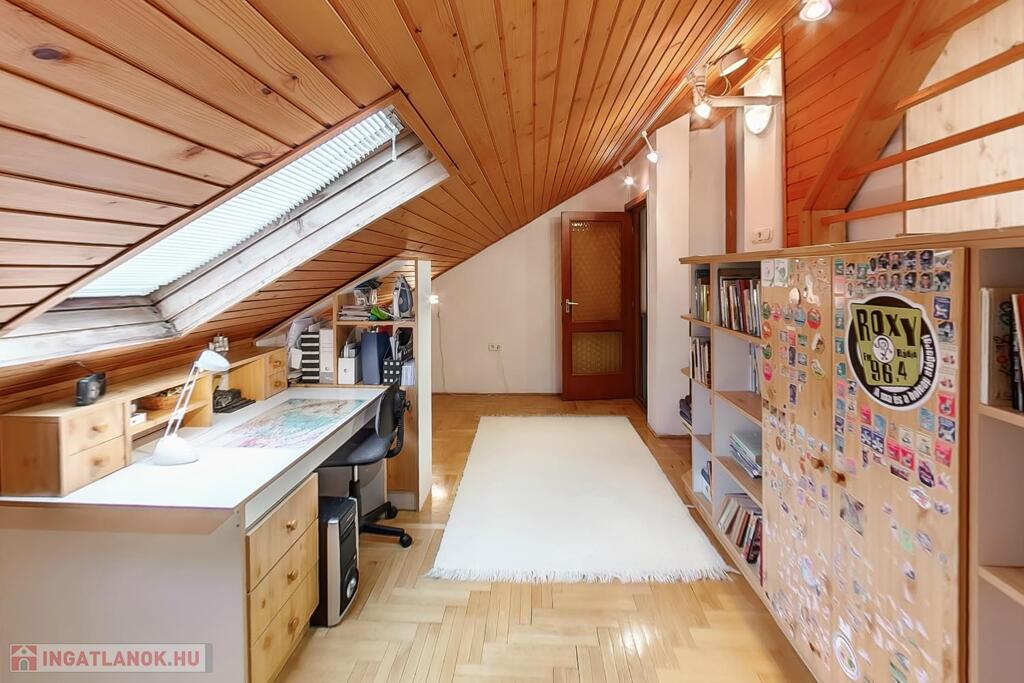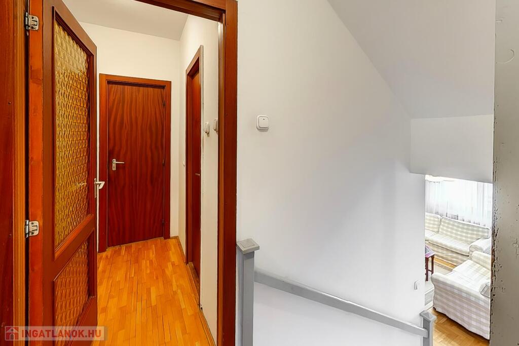 A ház délutáni napfényben fürdik, és klímával ellátva védelmet nyújt a nyári kánikulában. A tulajdoni lap szerinti alapterület 114 nm, de a tetőtér beépítésével a valós terület 175 nm, beleértve a garázst, teraszt és az emeleti erkélyt. Az elő- és hátsókert tovább növeli az életteret, melyek összesen 80 nm területűek.