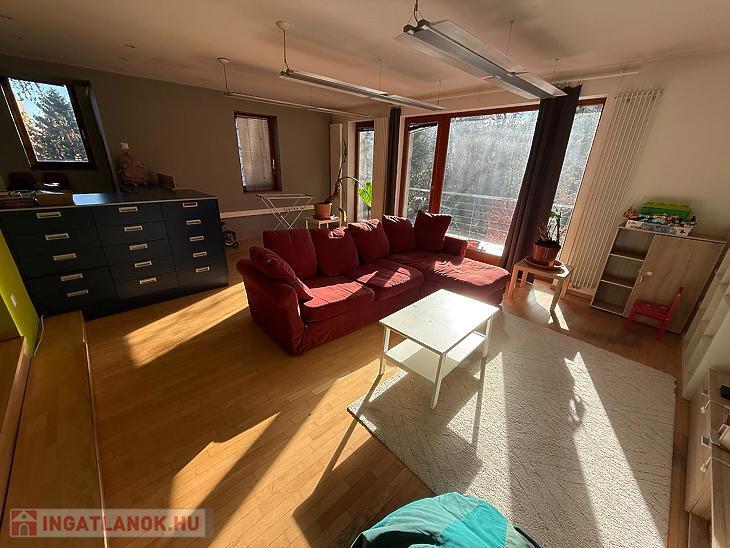 Eladásra kínálunk egy csendes, jó állapotú, nettó 159 nm-es + 15 nm-es teraszos, belső kétszintes, világos, panorámás lakást Németvölgy frekventált részén, a Fürj utcában.