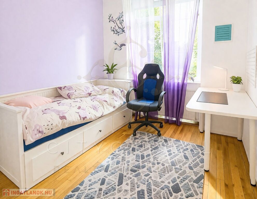 A mindennapi kényelmet tovább növeli a kamra, a különálló mellékhelyiség és a fürdőszoba praktikus elhelyezése. Az elrendezésnek köszönhetően minden funkcionális zóna jól elkülönül, mégis harmonikusan kapcsolódik a lakás élettereihez – átgondolt, élhető és otthonos.
