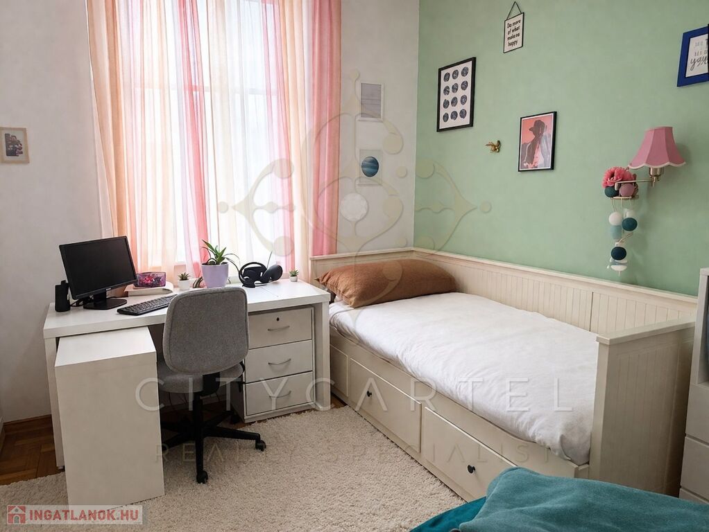 A lakás déli tájolású, 2,8 méteres belmagassággal rendelkezik, folyamatosan karbantartott és részben felújított.