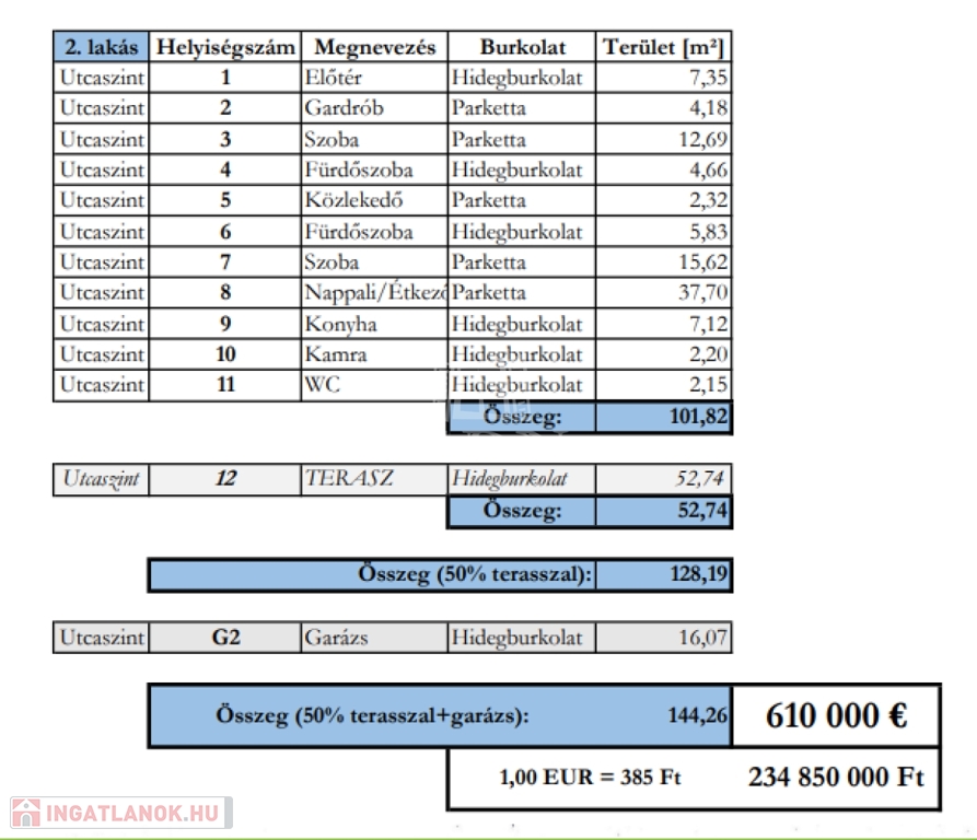 A bruttó 128 m2-es lakáshoz kapcsolódó további helyiségek: