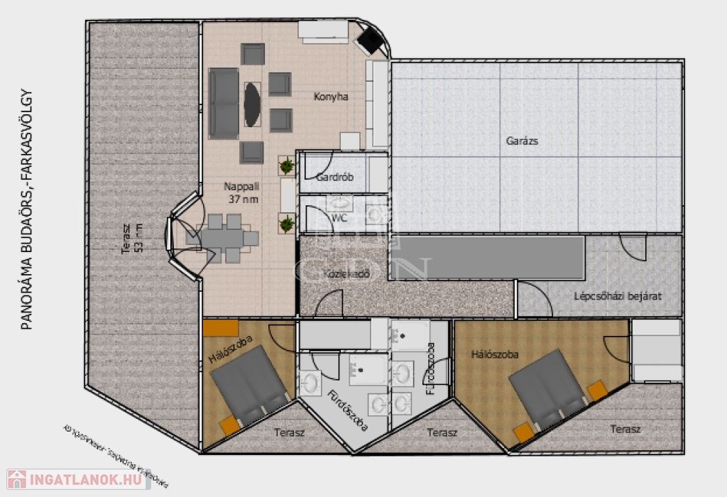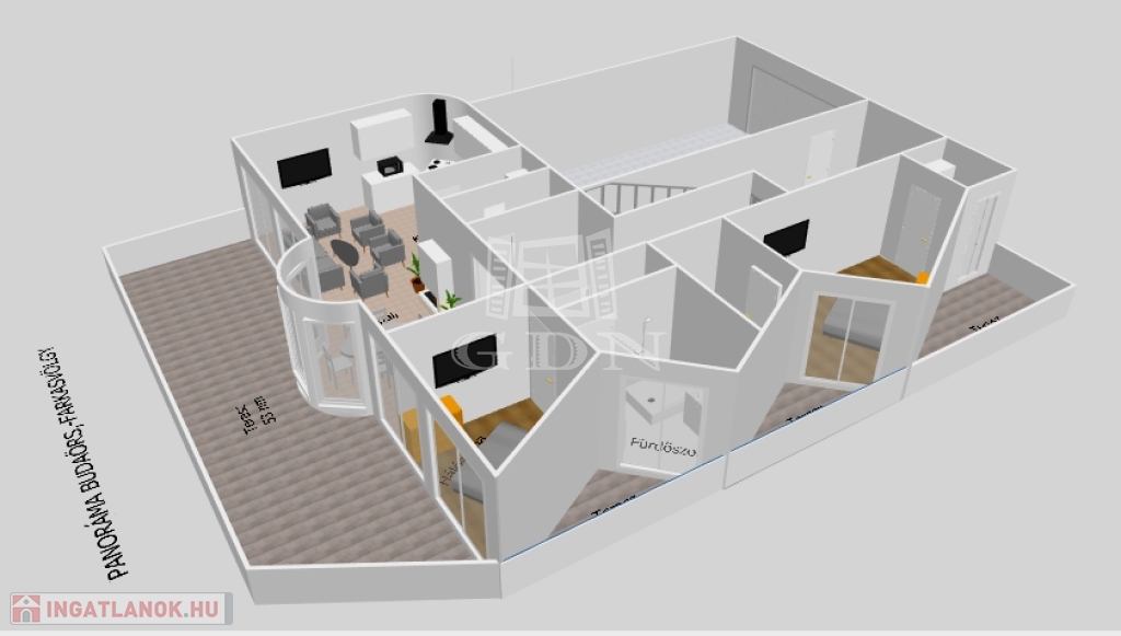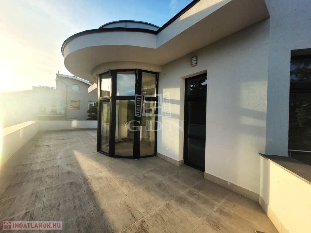 A luxus otthon a Budai oldal kiemelt részén a Farkasvölgy-Csillebérc városrészek ölelésében, csendes hegyvidéki környezetben, a tájvédelmi terület közelében helyezkedik el! A lakáshoz tartozó hatalmas méretű teraszról csodálatos panoráma nyílik a városra, valamint a Frank hegyre.