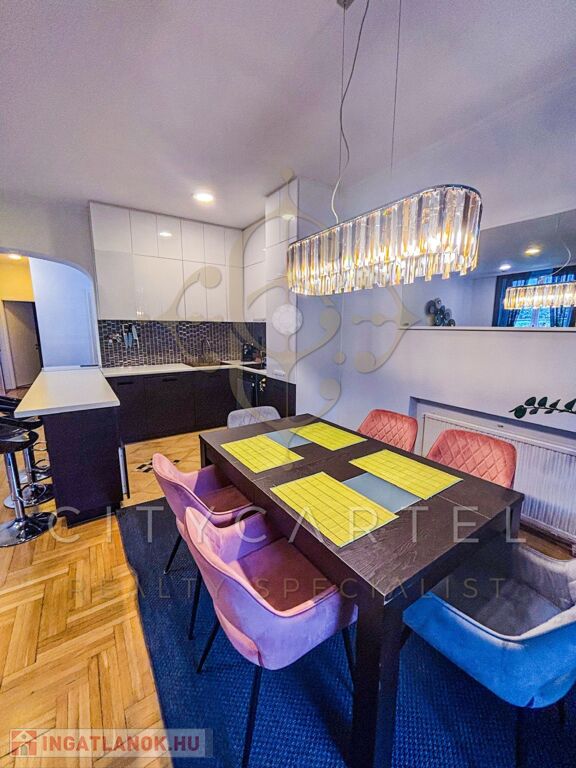 A lakás déli tájolású, 2,8 méteres belmagassággal rendelkezik, folyamatosan karbantartott és részben felújított.