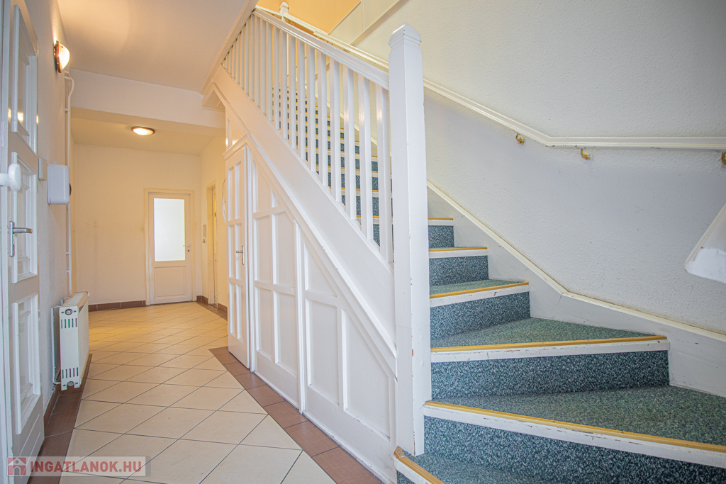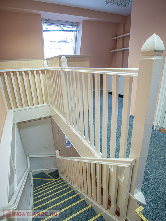 A lakás kétfrontos, az ablakok a felújított Postapalota felé illetve a belső udvar felé is néznek.