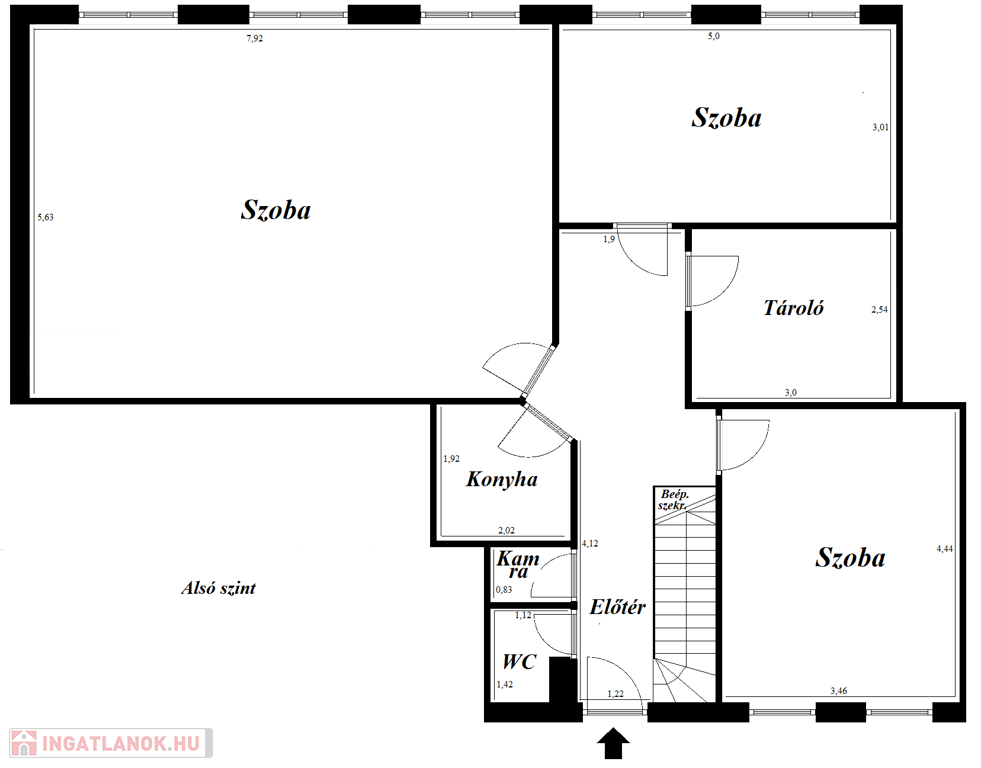 A lakás jelenleg is remek beosztású, de tovább is alakítható akár két külön lakássá is. A képek mellett megtalálható a lakás alaprajza és nemsokára átalakítási javaslatok is elérhetőek lesznek.