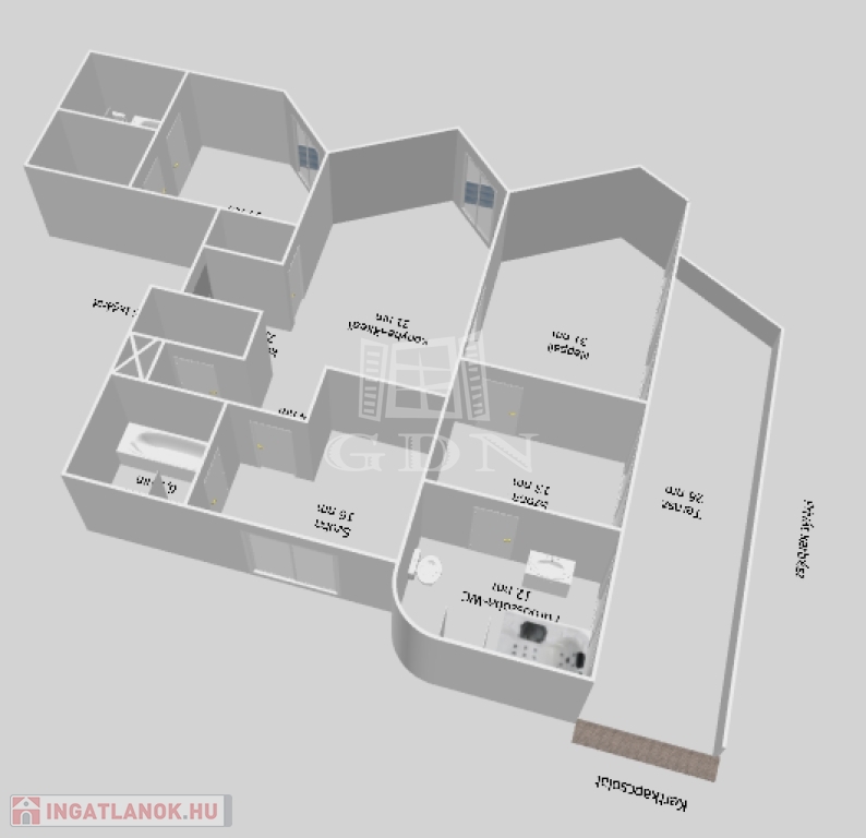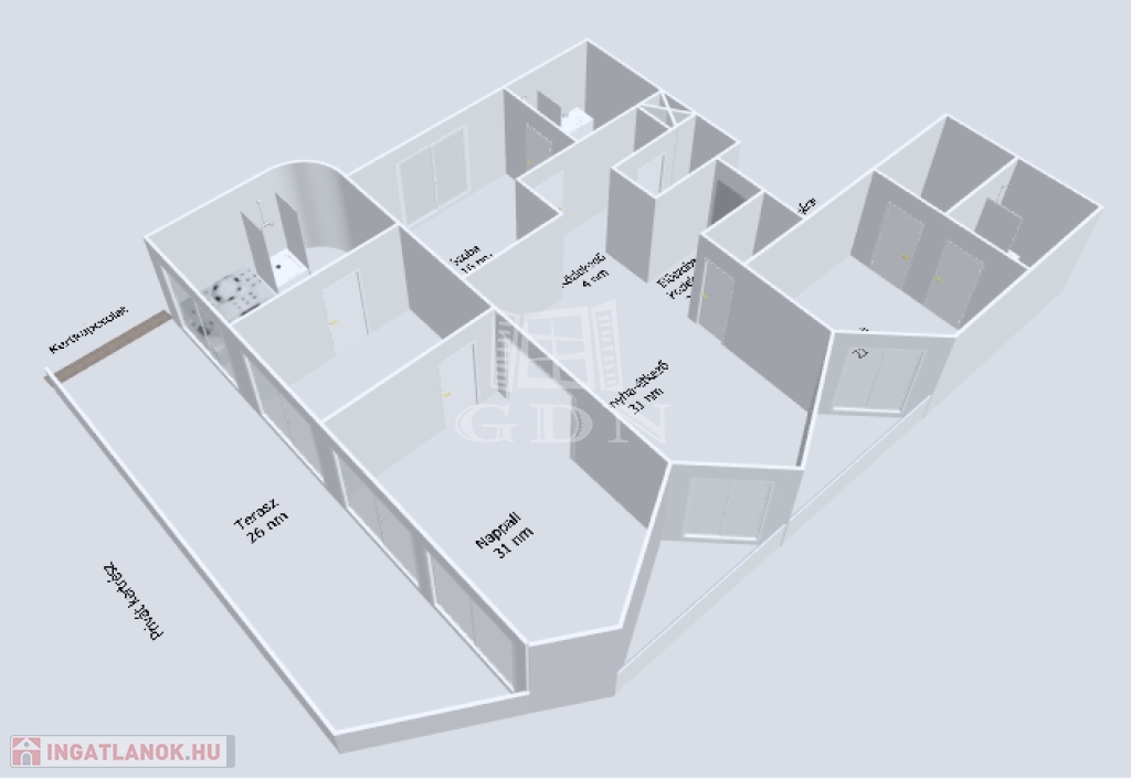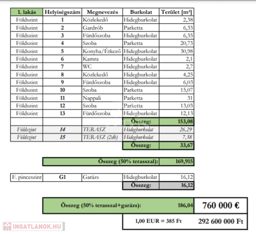 - kertkapcsolatos nagyméretű terasz: 35 m2,